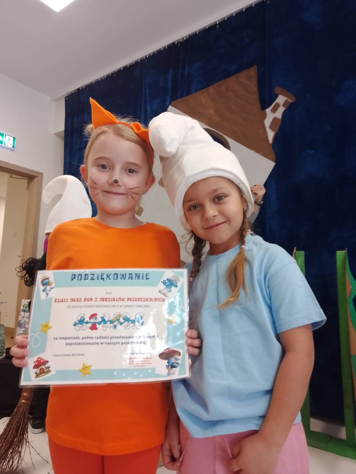 W minionym tygodniu dzieci z oddziałów przedszkolnych naszej szkoły zaprezentowały wyjątkowe przedstawienie pt. „Smerfy”. Najpierw, w środę, młodzi artyści odwiedzili Publiczne Przedszkole, gdzie z radością wystąpili przed najmłodszą publicznością. Następnego dnia zaprezentowali swój spektakl uczniom klas młodszych naszej szkoły.